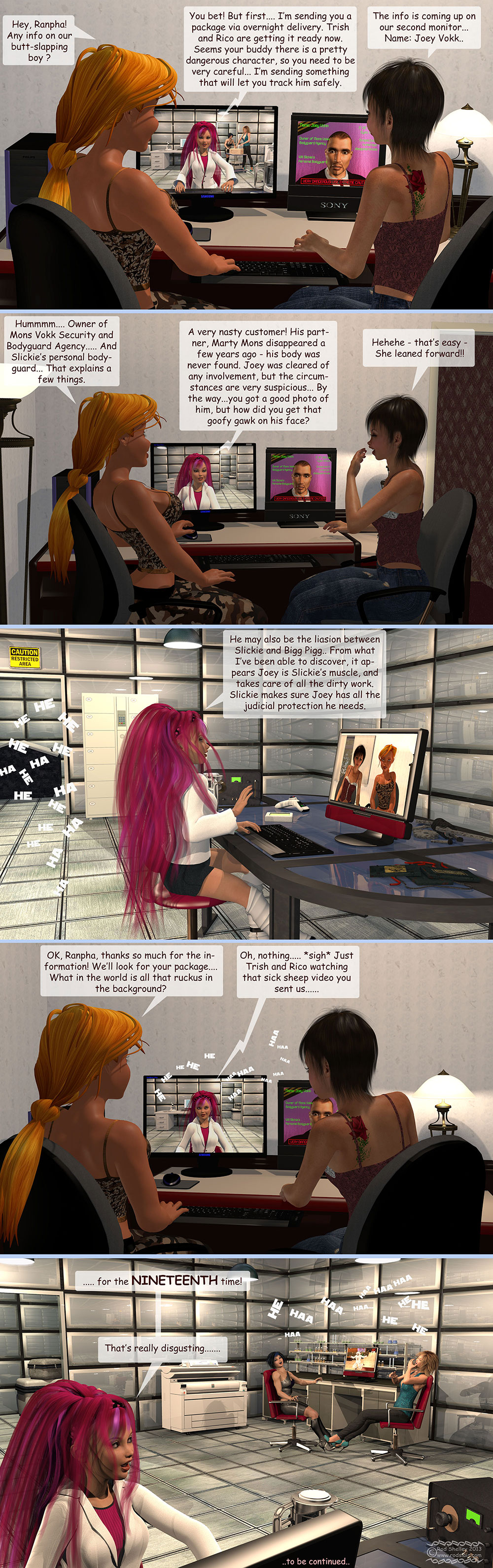 Ranpha, Trish, and Rico are original characters created by my good friend Dan (diemamker on Renderosity). Thanks, Dan, for letting your lovely girls hang out with the T.N.A. Girls!